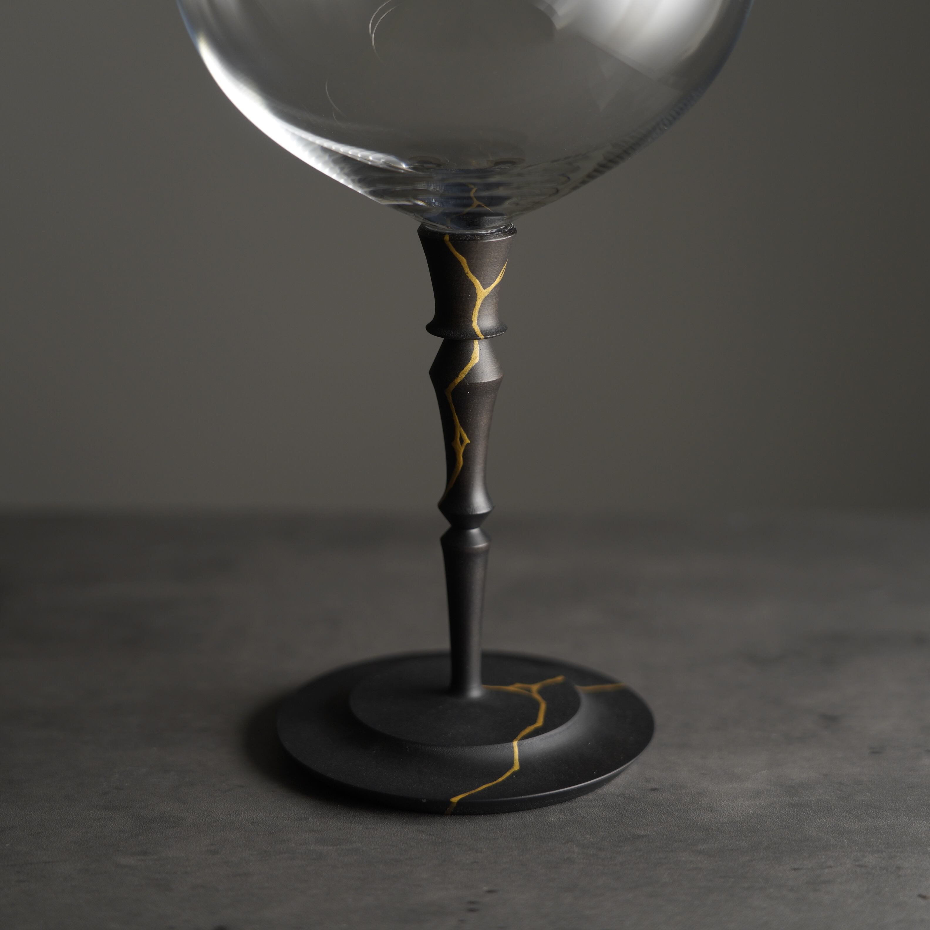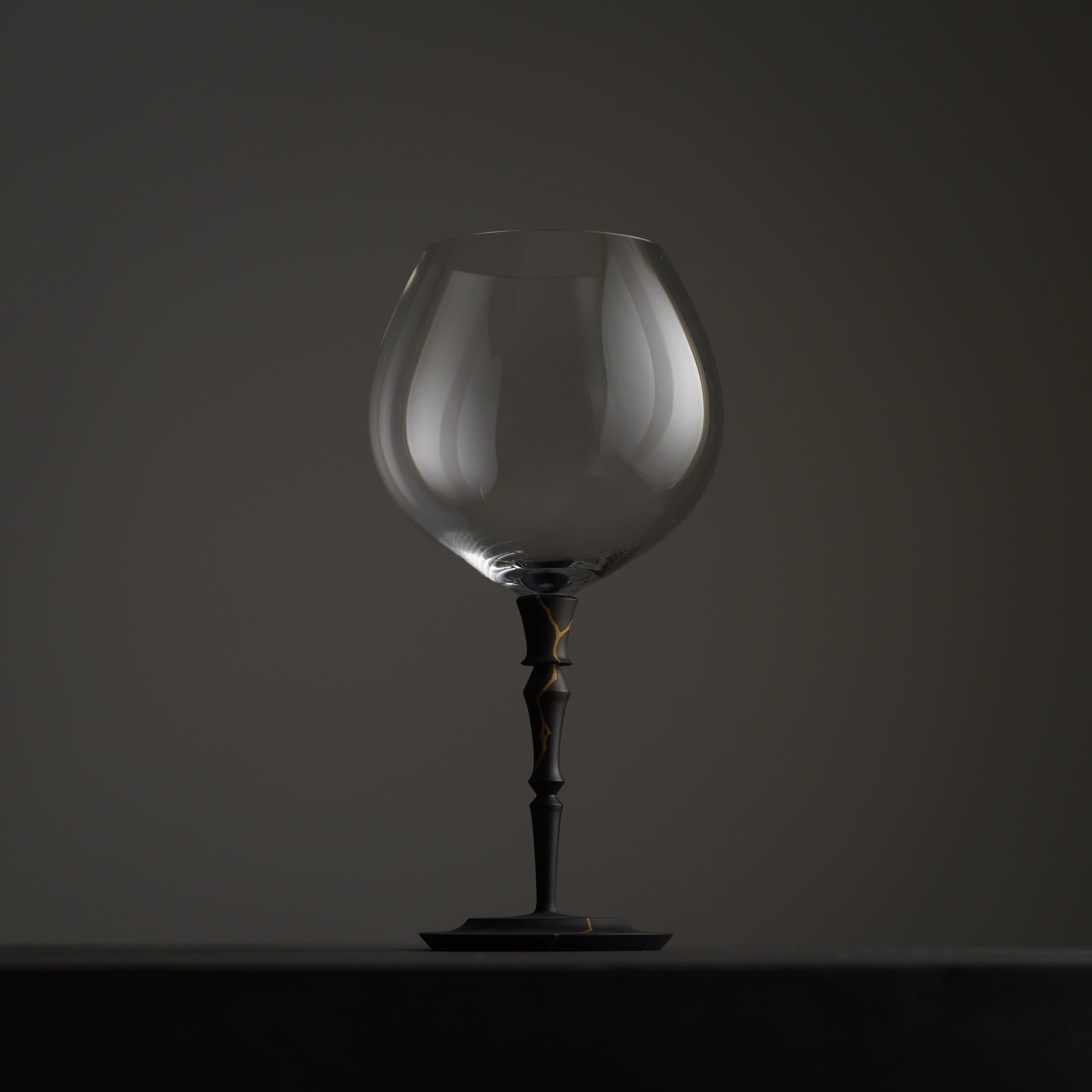 信州の豊かな森林で育った山桜の木を職人が手仕事で創り出し、挿絵には純金を漆と練り合わせる「金泥絵」の技法で模様を描いて丁寧に仕上げたワイングラスです。