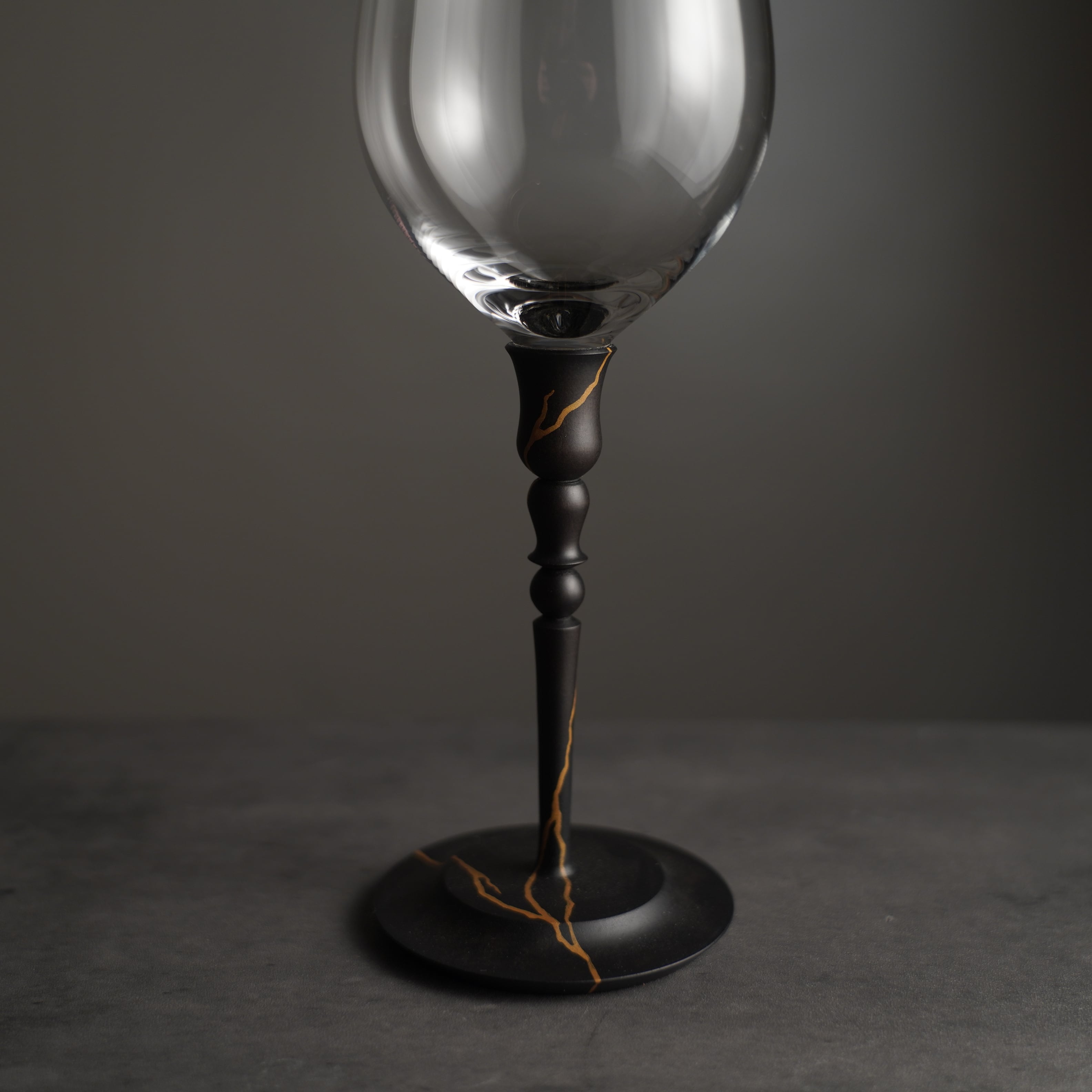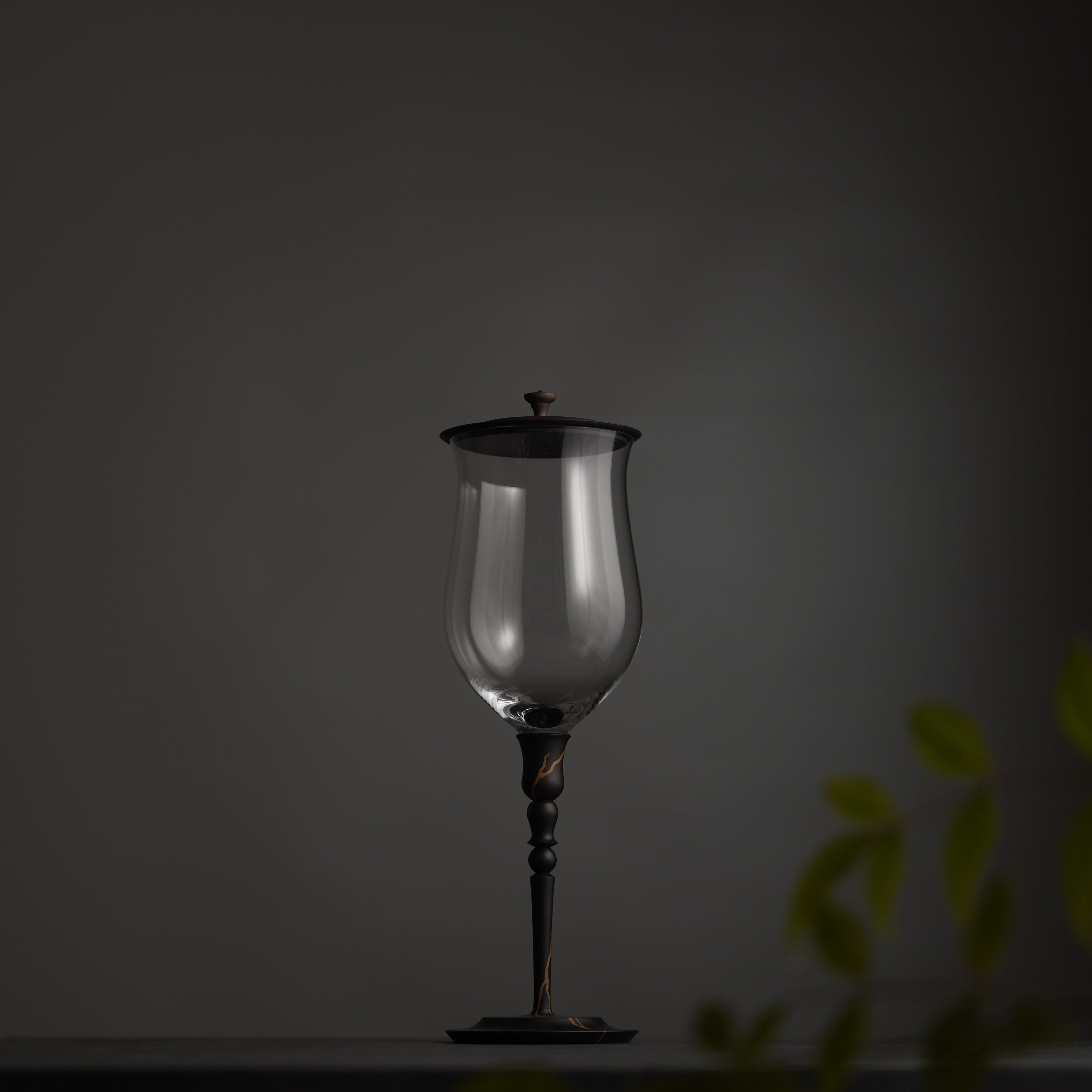 信州の豊かな森林で育った山桜の木を職人が手仕事で創り出し、挿絵には純金を漆と練り合わせる「金泥絵」の技法で模様を描いて丁寧に仕上げたワイングラスです。