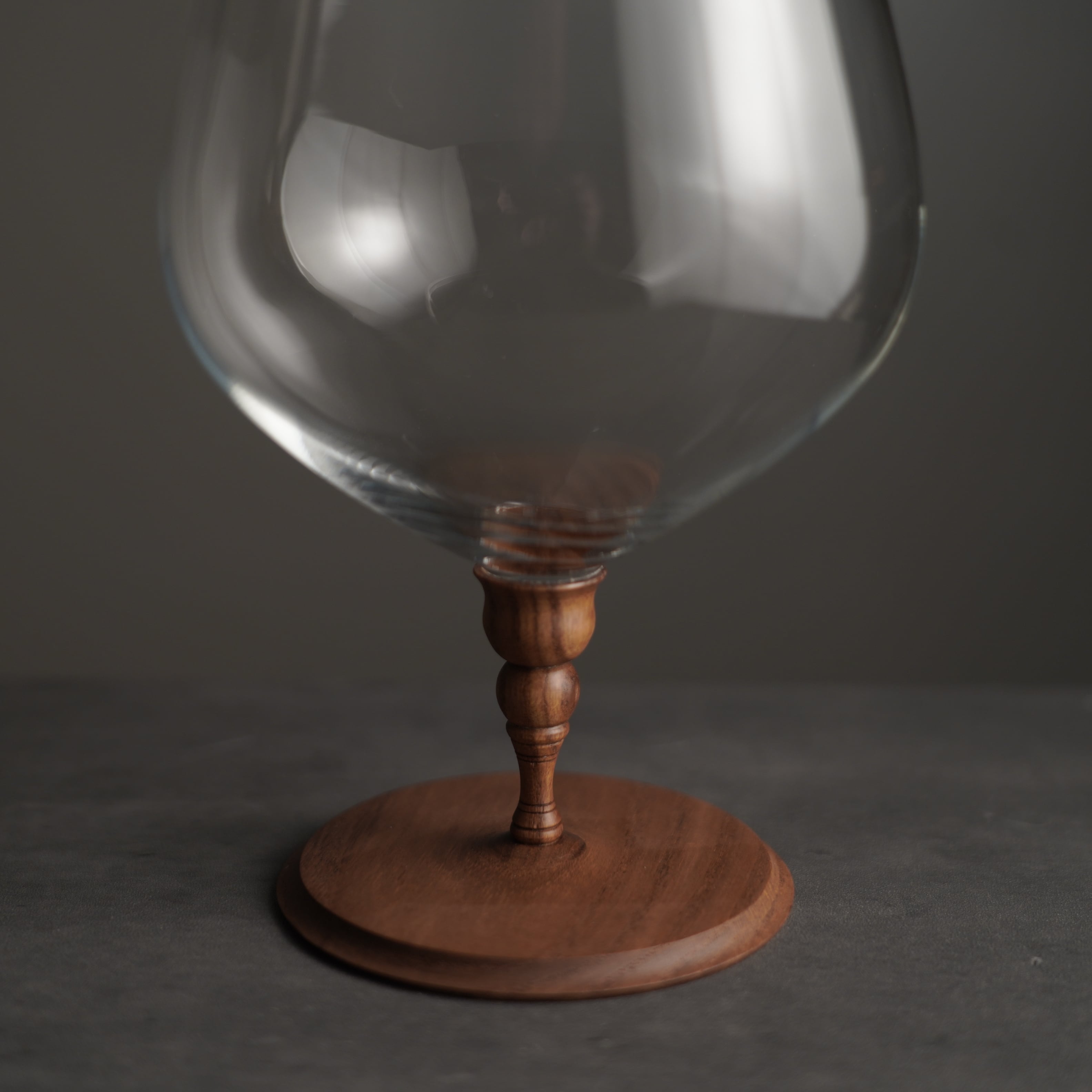 職人の手によって一つ一つ丁寧に削り出された木製の持ち手は、滑りにくく安定して持てるよう設計されている、硝子の美しさと木の温もりを兼ね備えたデザイングラスです。