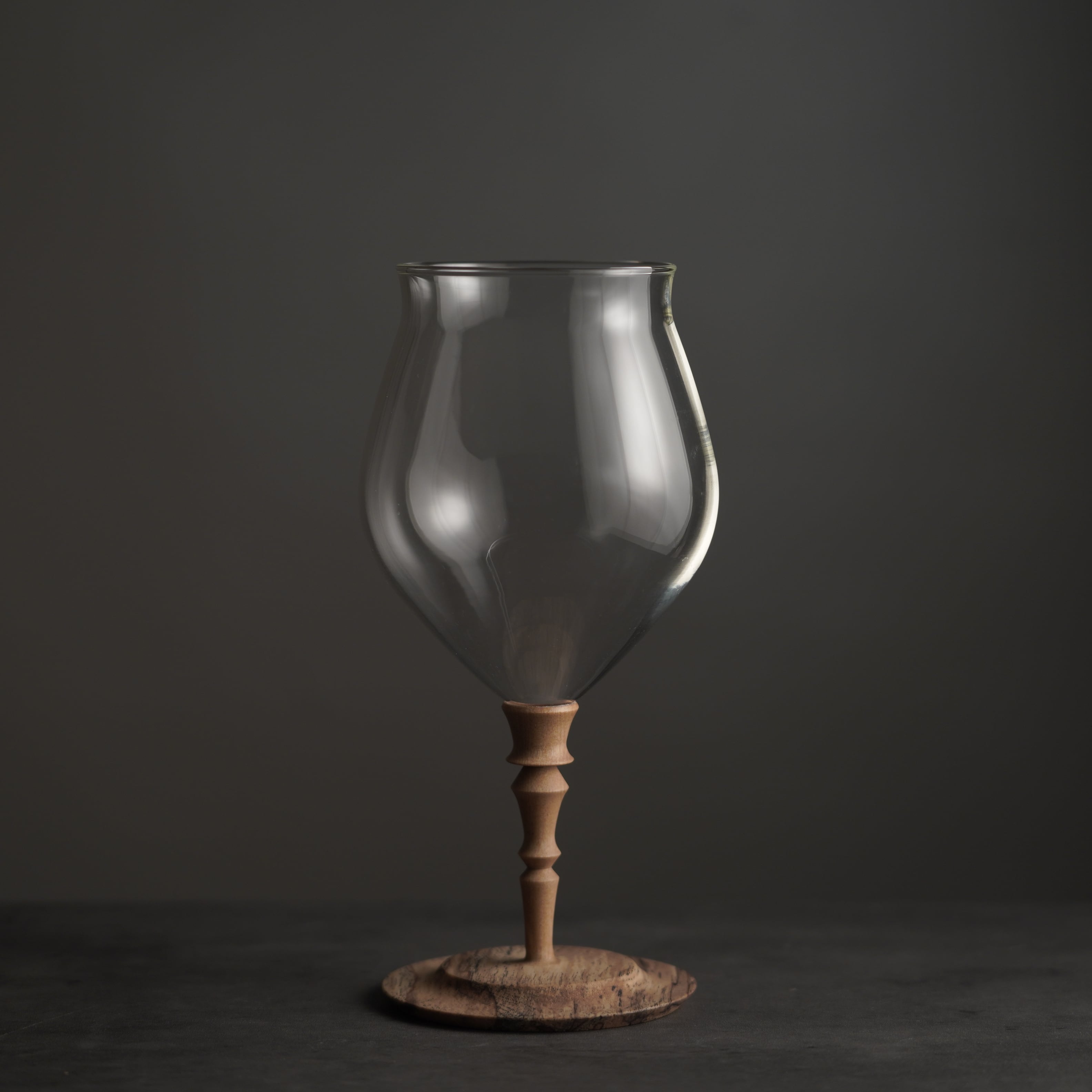 ありそうでなかった、硝子の透明感と木の温もりを併せ持つグラス。