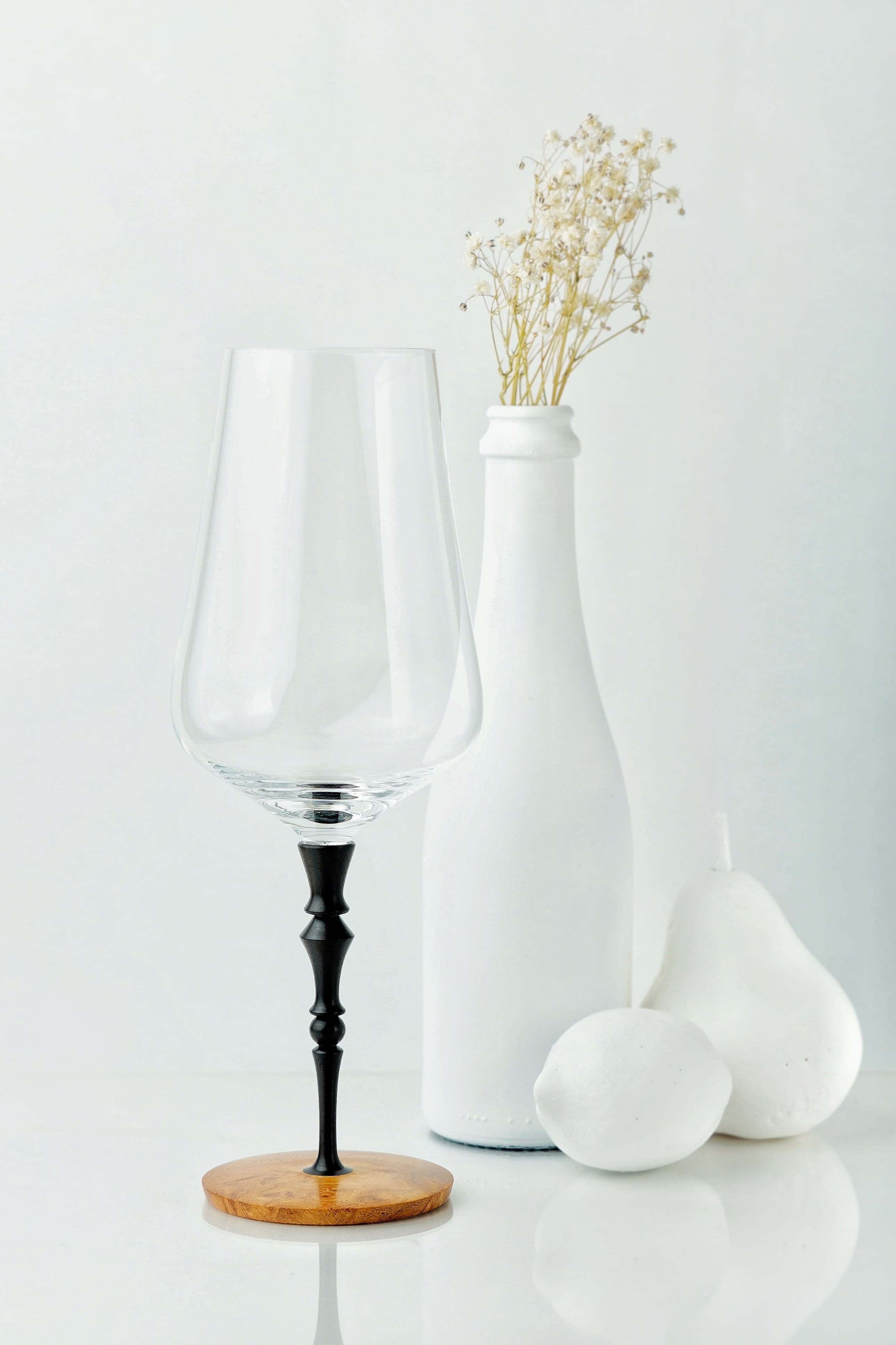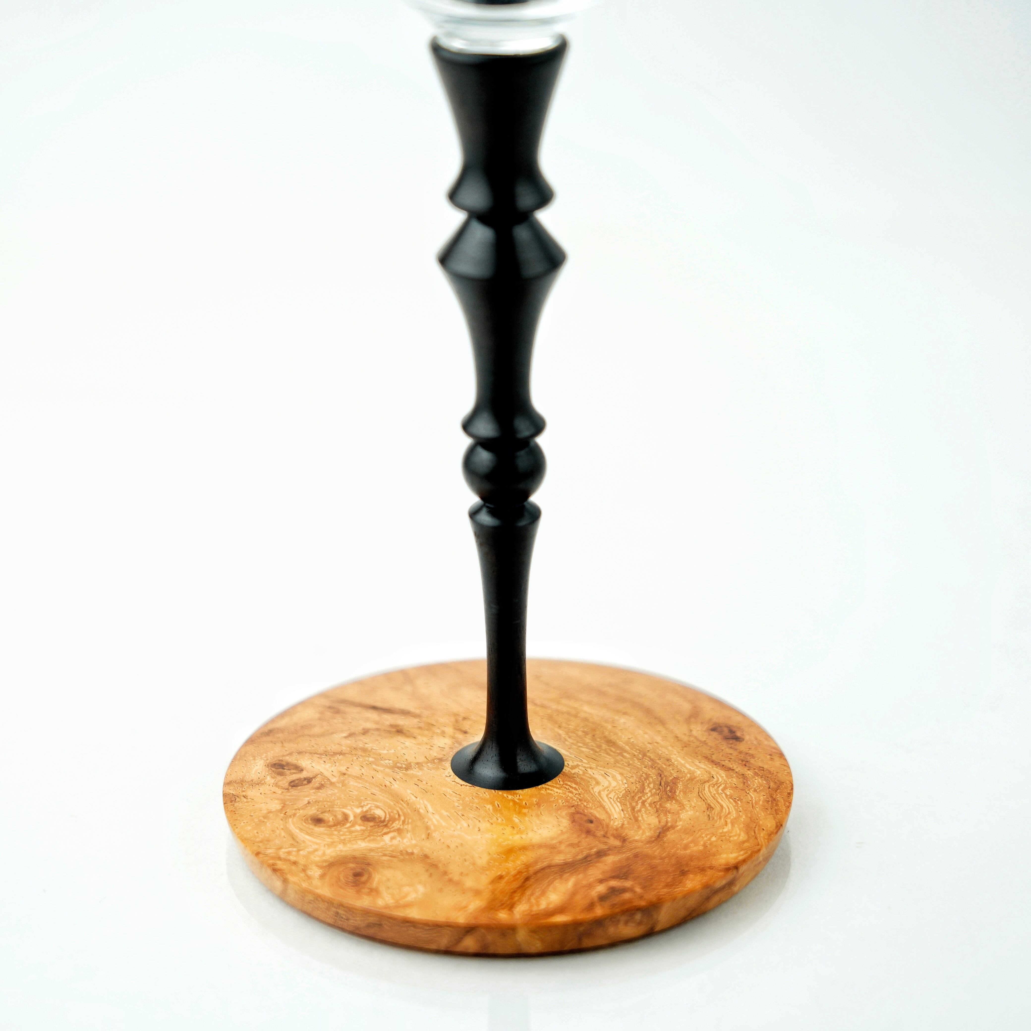 『MOKU glass』の最大の特徴は、持ち手の部分(ステム)と土台(プレート)が木製であることです。