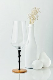独自の手法で「木」と「硝子」という全く違う素材を融合し、透明感と木の温もりをあわせ持つグラスです。
