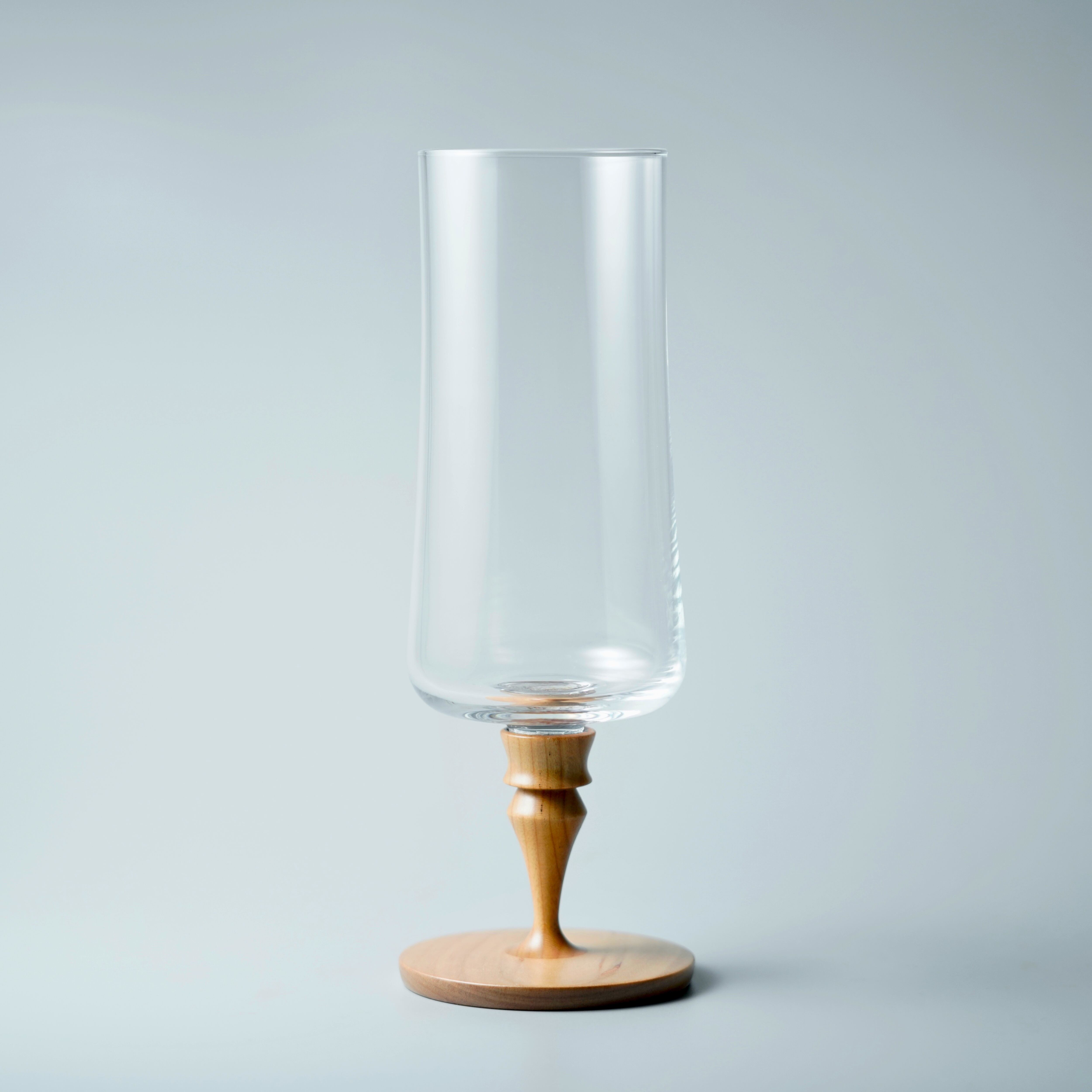 独自の手法で「木」と「硝子」という全く違う素材を融合し、透明感と木の温もりをあわせ持つグラスです。