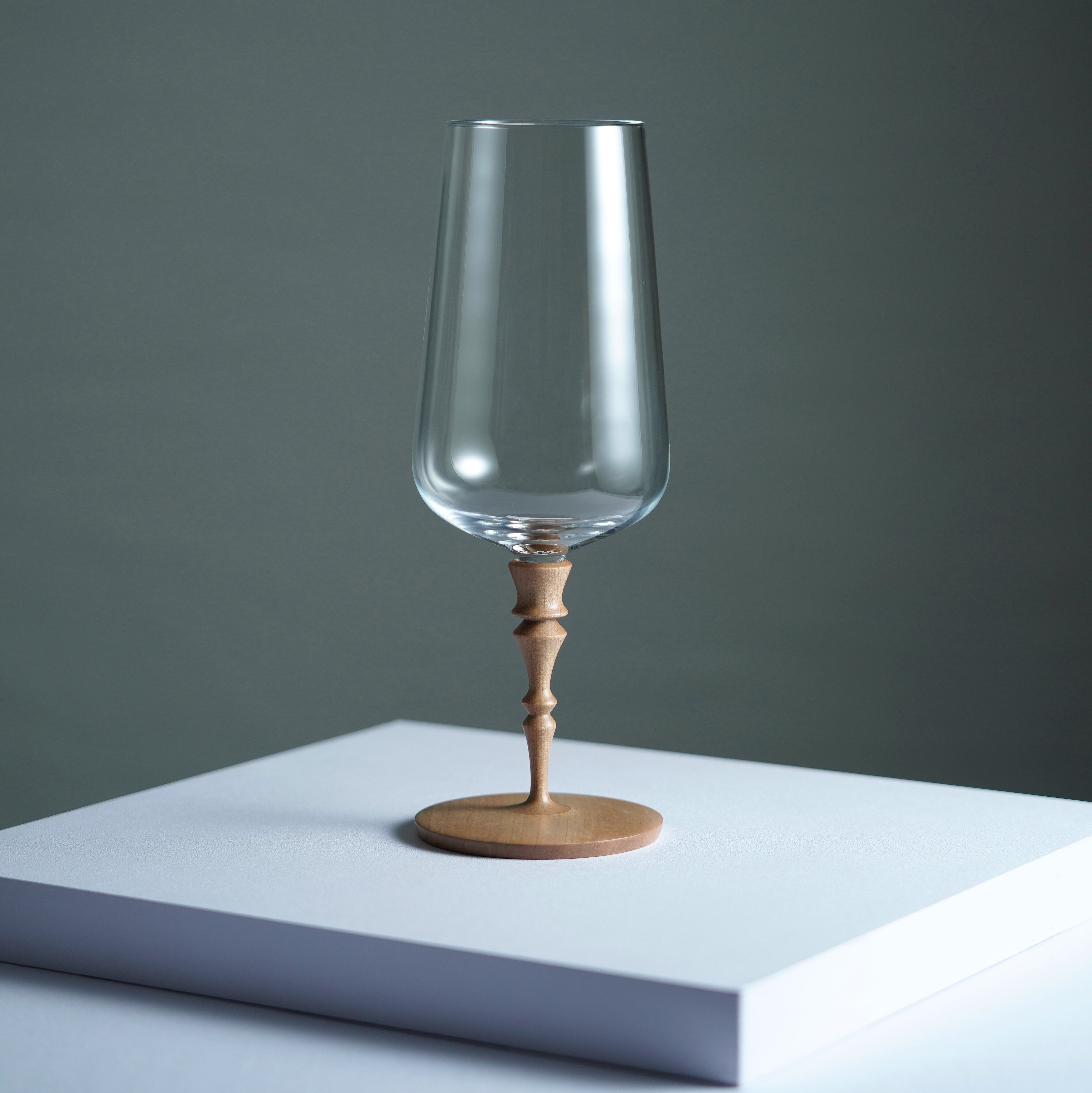 『MOKU glass』の最大の特徴は、持ち手の部分(ステム)と土台(プレート)が木製であることです。