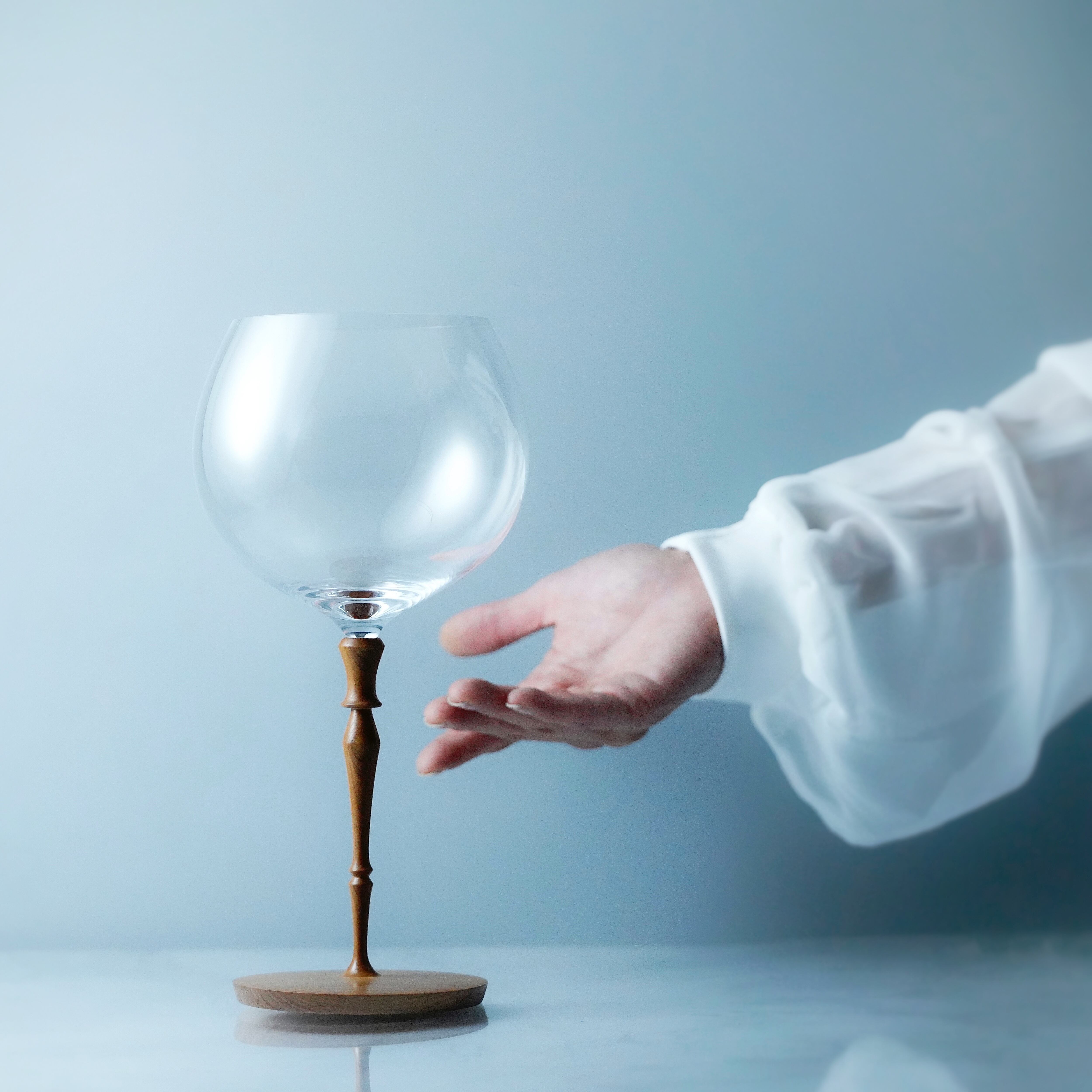 独自の手法で「木」と「硝子」という全く違う素材を融合し、透明感と木の温もりをあわせ持つグラスです。