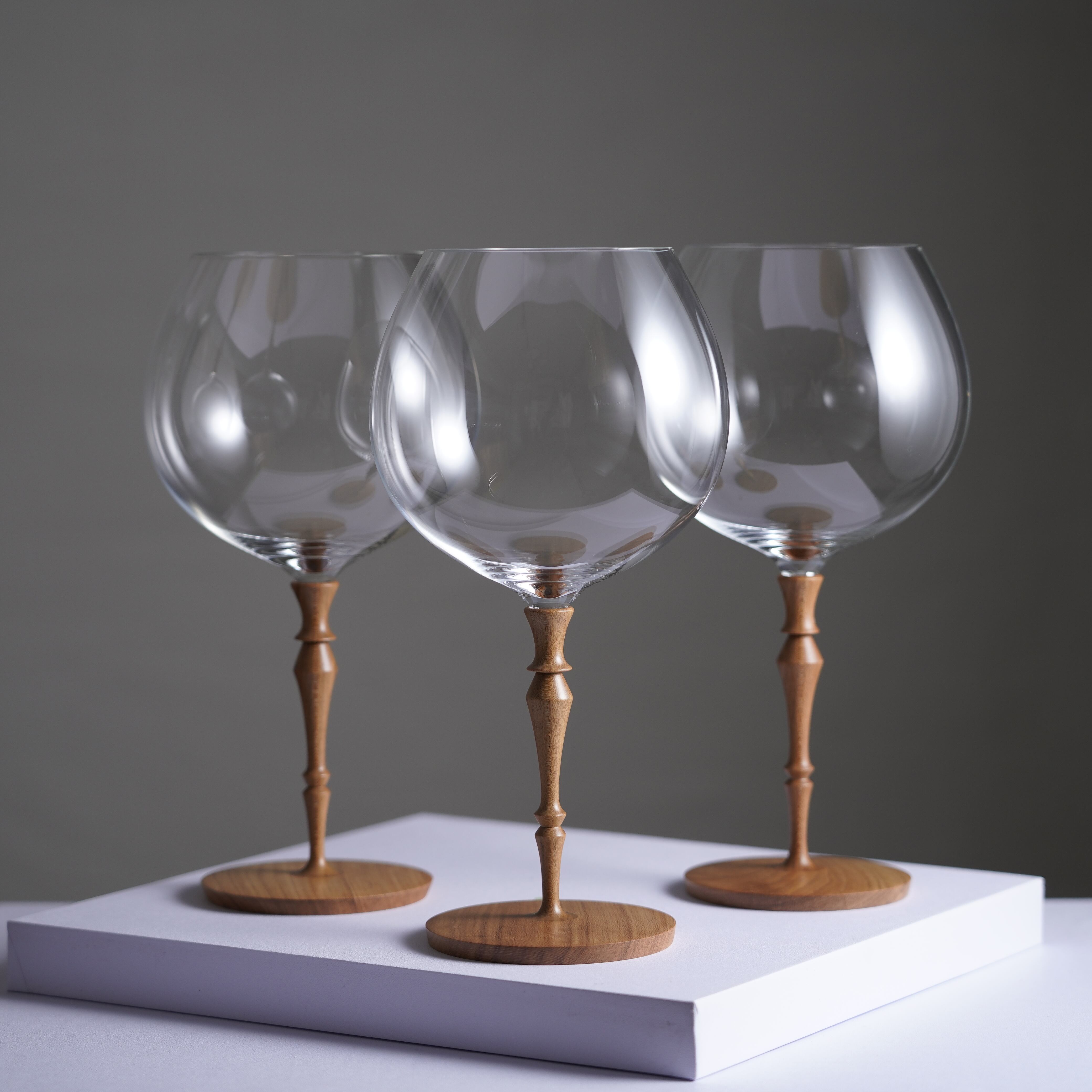 『MOKU glass』の最大の特徴は、持ち手の部分(ステム)と土台(プレート)が木製であることです。