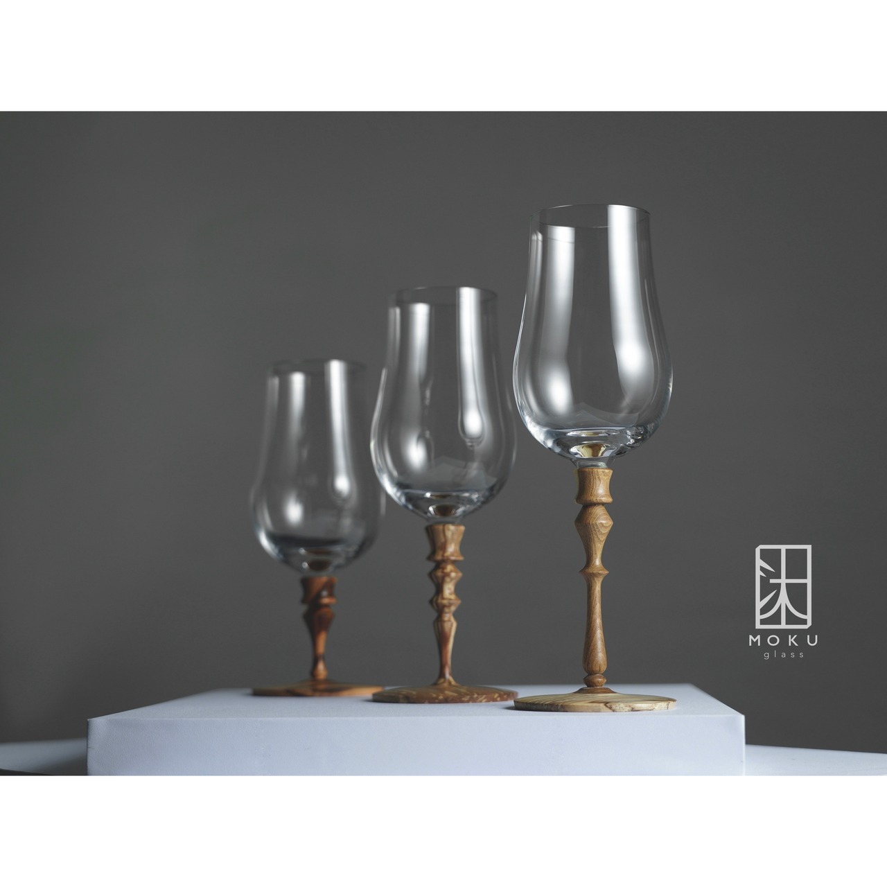 『MOKU glass』の最大の特徴は、持ち手の部分(ステム)と土台(プレート)が木製であることです。