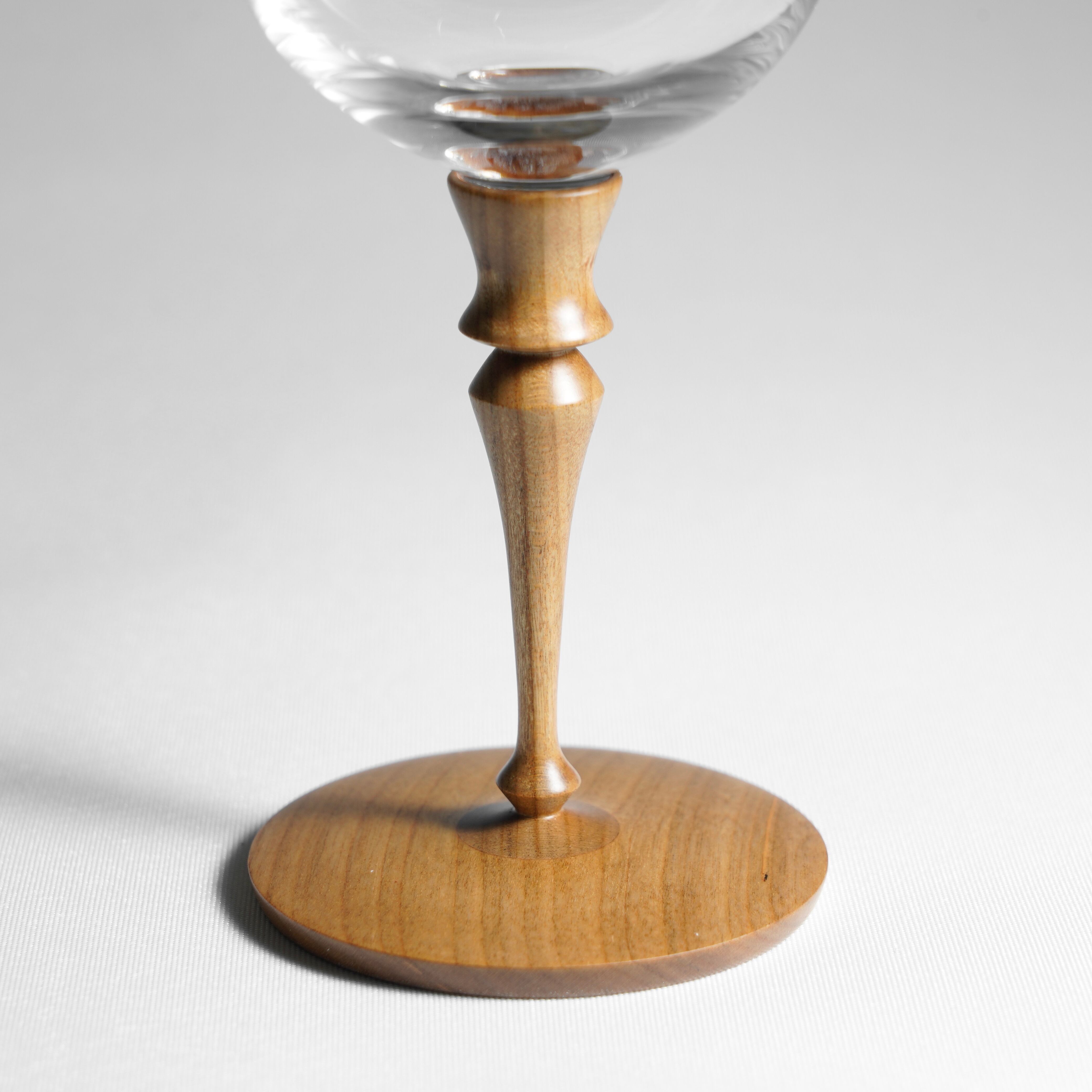 『MOKU glass』の最大の特徴は、持ち手の部分(ステム)と土台(プレート)が木製であることです。