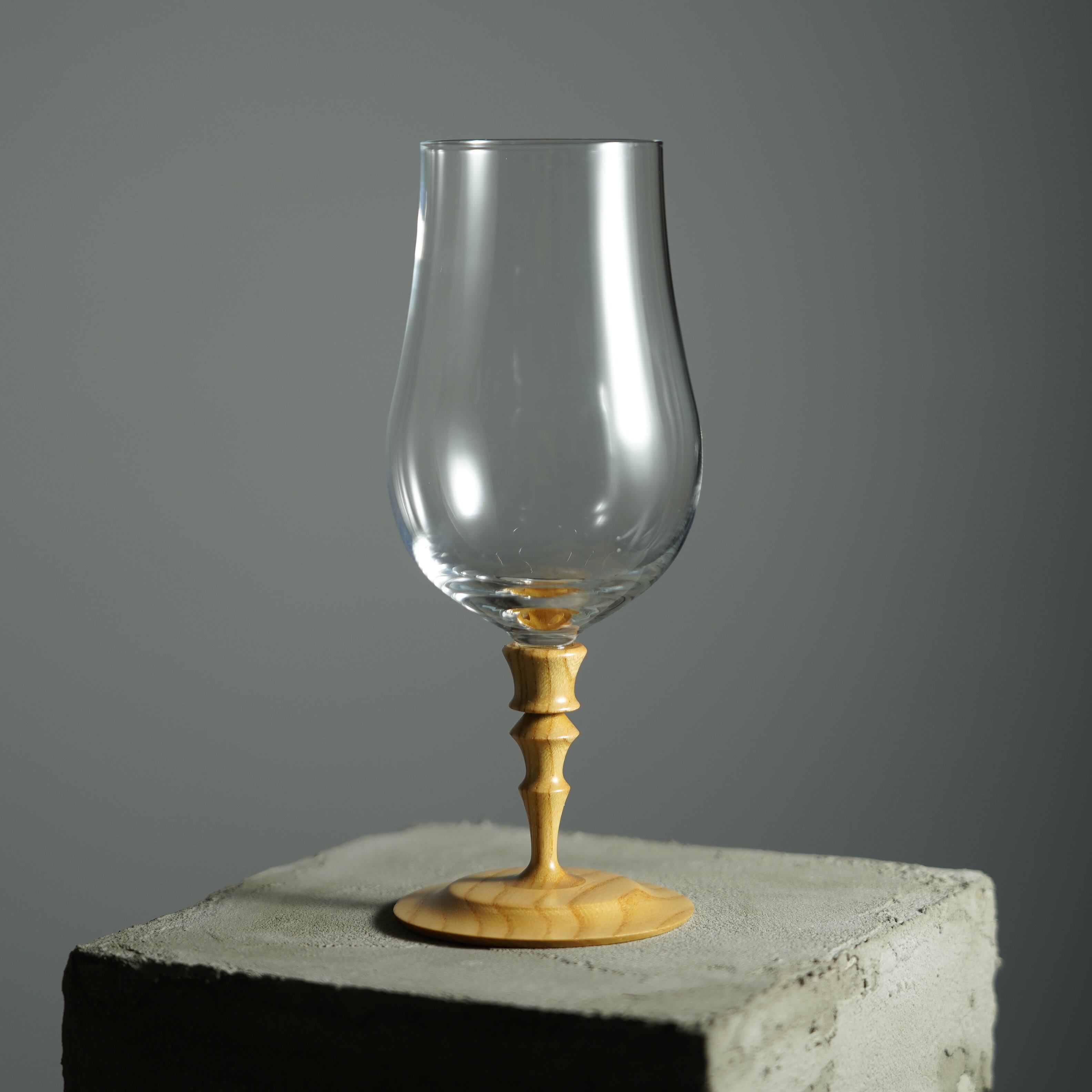 ありそうでなかった、硝子の透明感と木の温もりを併せ持つグラス。