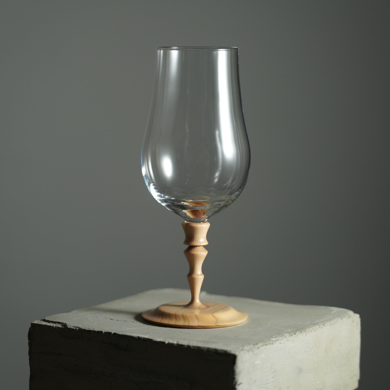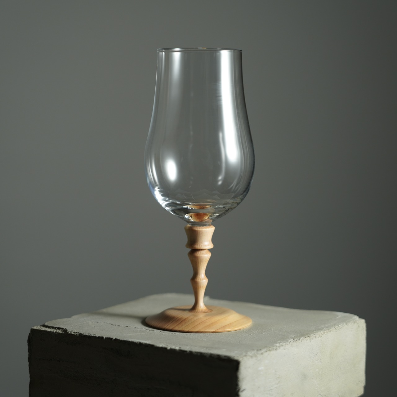 独自の手法で「木」と「硝子」という全く違う素材を融合し、透明感と木の温もりをあわせ持つグラスです。