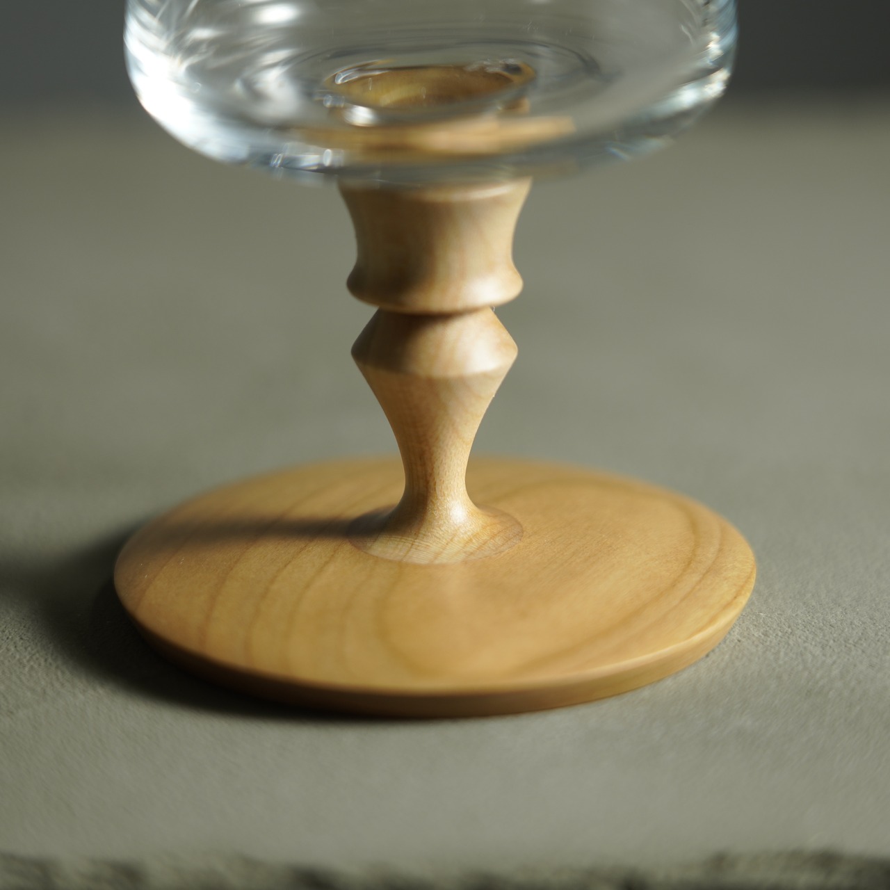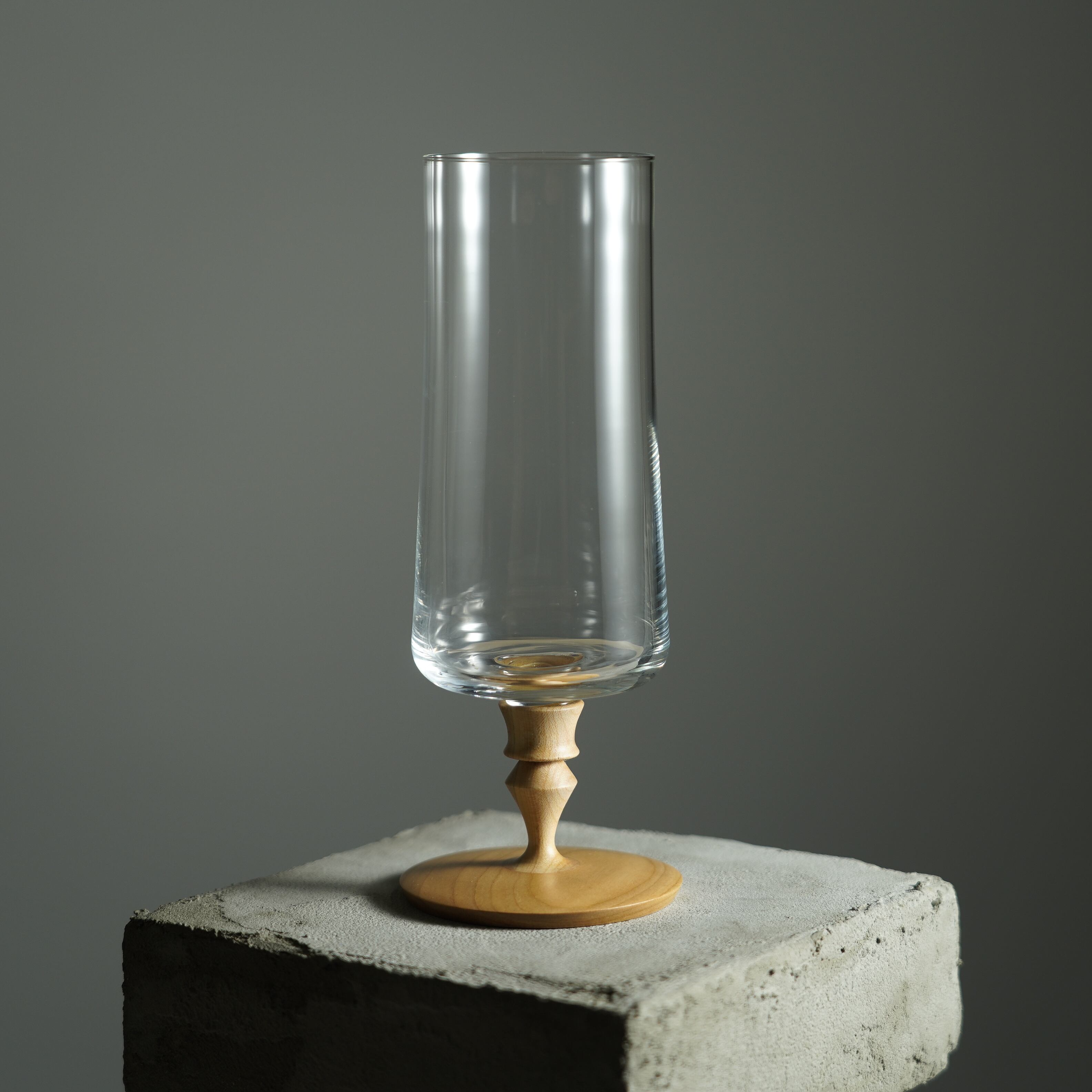 ありそうでなかった、硝子の透明感と木の温もりを併せ持つグラス。