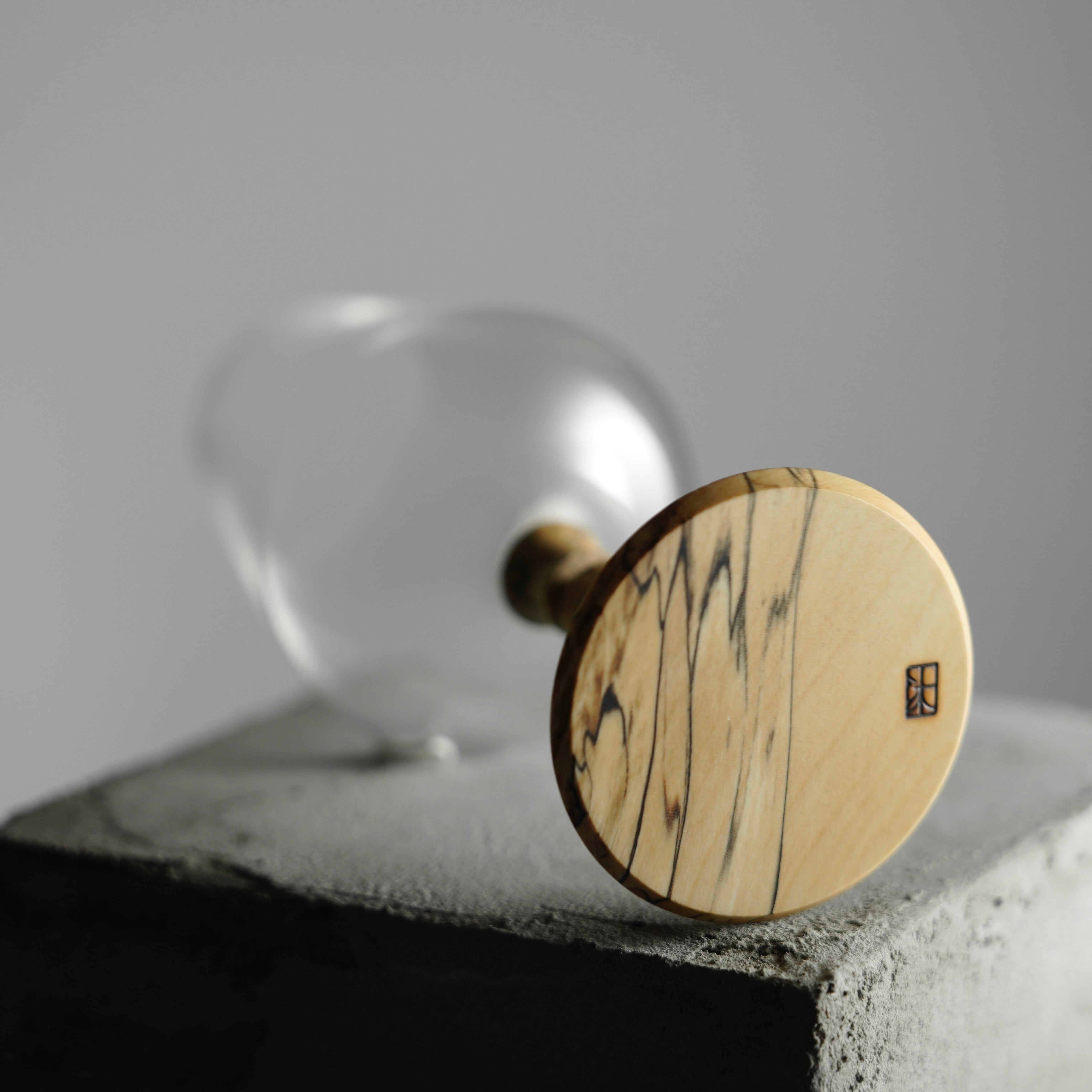 ありそうでなかった、硝子の透明感と木の温もりを併せ持つグラス。