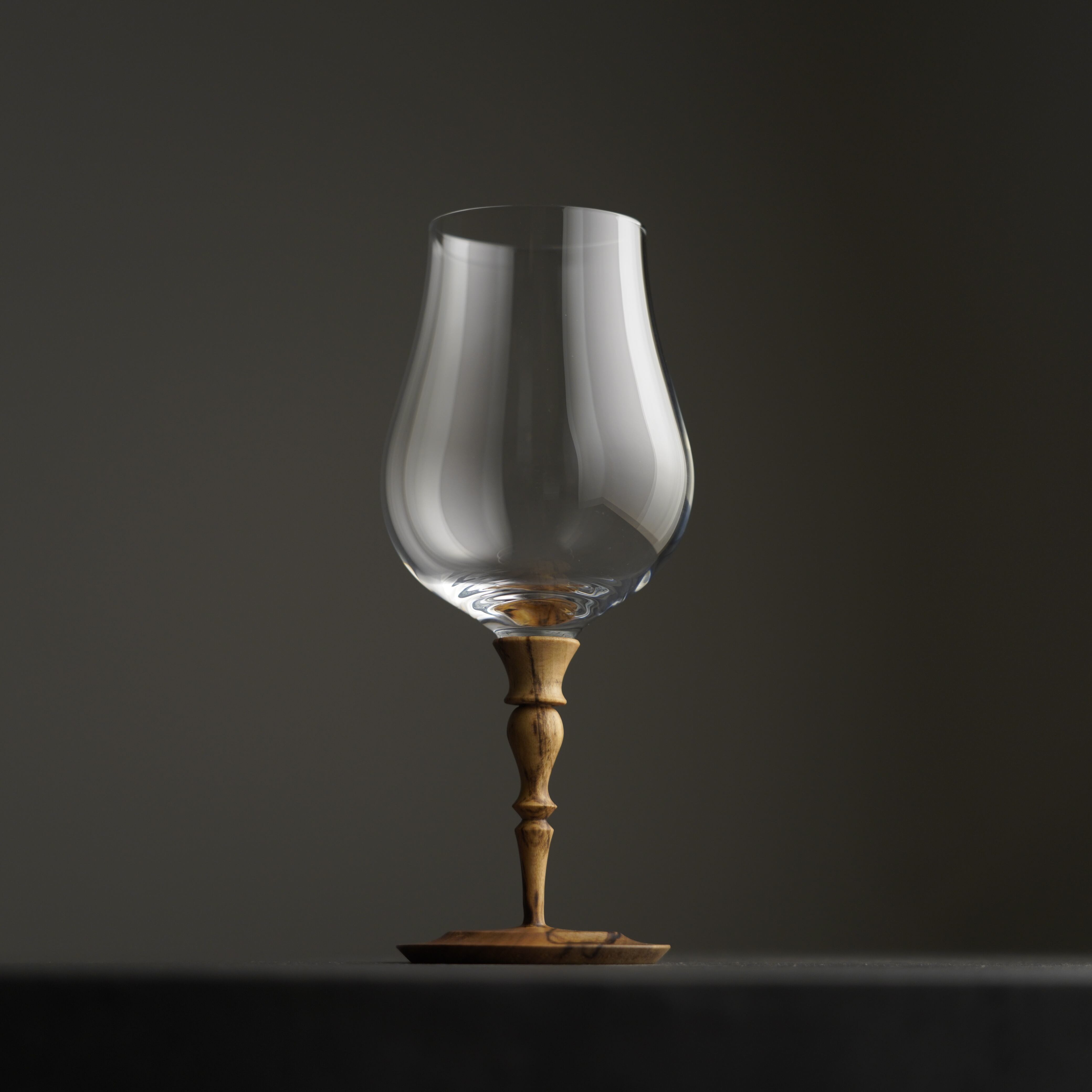 ありそうでなかった、硝子の透明感と木の温もりを併せ持つグラス。
