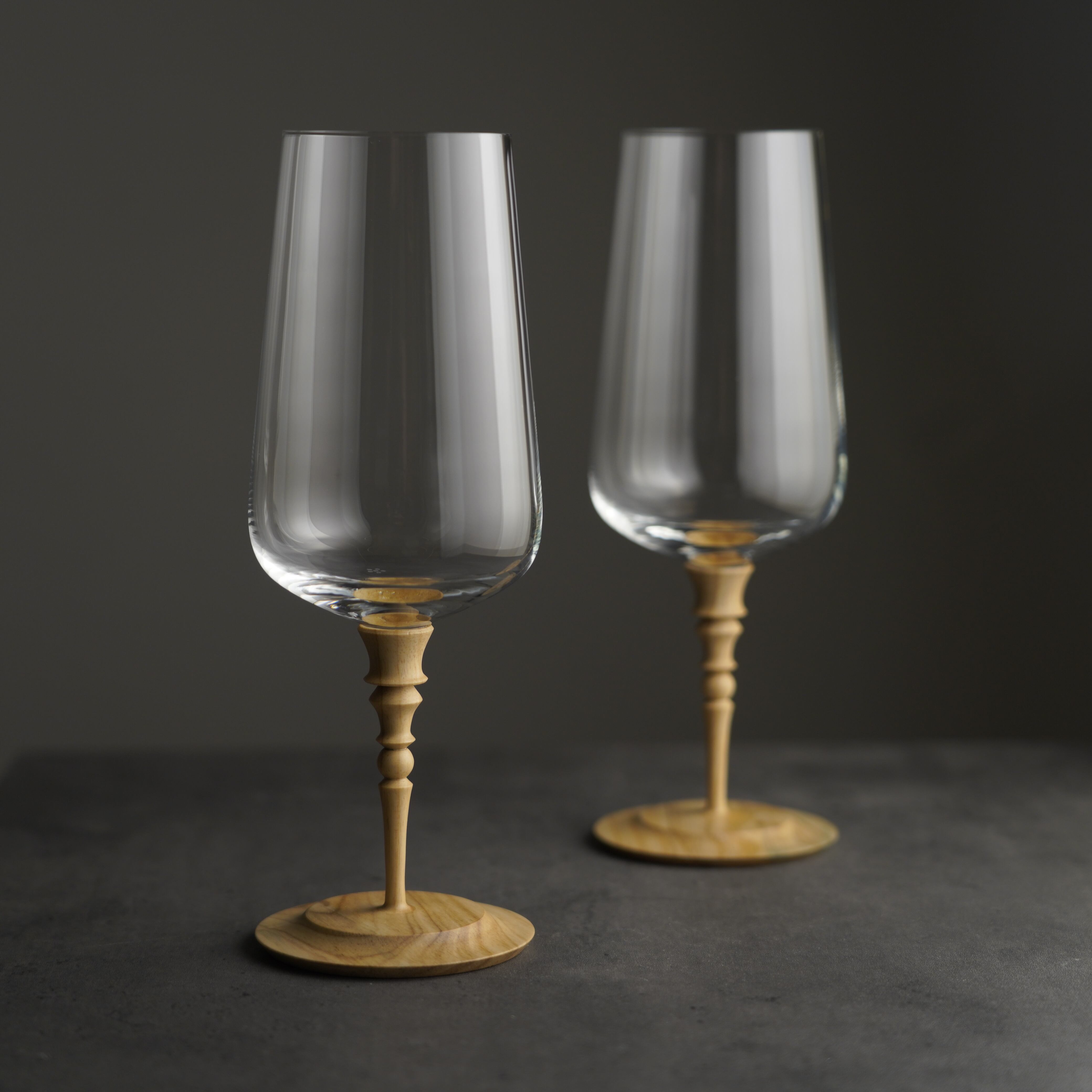 ありそうでなかった、硝子の透明感と木の温もりを併せ持つグラス。